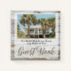 Une photo de votre location de vacances est mise en valeur dans ce cahier d'invités utile. Accueillez vos invités dans votre maison de location de vacances, appartement, maison de lac, maison de plage, chambre d'hôtes et encouragez-les à signer le livre d'or et à laisser un mot spécial. Le livre d'or de location de vacances imprimé sur mesure peut être utilisé pour les notes des invités ou personnalisé pour être utilisé sous le titre de votre choix. Le thème moderne de luxe d'une station balnéaire insulaire avec un motif de fond en planches de bois de plage blanches vieillies a le charme et le caractère de la sophistication.
