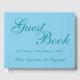 Cet élégant livre d'invités d'événements comporte les messages "Livre d'invités" et "Votre signature est demandée", ainsi qu'une date customisée. Le texte est de couleur cyan foncé, et l'arrière - plan est de couleur bleu ciel. Un livre d'or générique et personnalisable comme celui-ci peut être utilisé lors d'un événement tel qu'un enterrement, un mariage, une fête d'anniversaire, un baby shower ou tout autre événement.