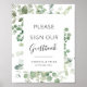 écriture simple élégante noire et verdure d'eucalyptus. Le texte et les couleurs de ce panneau de mariage peuvent être modifiés.