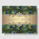 Livre d'or de mariage paon avec une belle bannière de texte diamantée dorée sur un fond élégant de plume de paon. Ce livre d'or paon est facilement personnalisable pour votre événement en ajoutant simplement le texte de votre choix dans le style de police que vous préférez. Il s'agit d'une conception imprimée sans vrais bijoux, feuille métallique, plumes, etc.