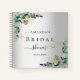 Une fausse couleur arrière - plan à l'aspect argent. Décoré avec une végétation d'eucalyptus et un feuillage doré. Ajoutez un nom et une date.