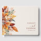 Elégante Feuilles Automne Mariage livre d'hôtes dispose d'un beau bouquet de feuilles d'automne en rouille, jaune, or, moutarde, marron et violet.