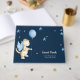 Complétez votre soirée baby shower avec un livre où vos invités peuvent écrire les meilleurs voeux pour le petit bébé. Il a une illustration d'un bébé dragon tenant un ballon bleu sur un arrière - plan bleu foncé avec des étoiles bleues et des soleils jaunes. Illustré et dessiné par Patricia Alvarez.