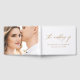Cet élégant livre d'hôtes de mariage est parfait pour les mariages élégants et modernes. Le design comporte "le mariage de" affiché en calligraphie dorée avec vos noms et la date mariage ci-dessous sur un arrière - plan blanc. Ajoutez votre texte personnalisé à la colonne vertébrale du livre d'hôtes minimaliste mariage. L'arrière du livre d'or contient votre photo fiançailles horizontale.