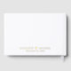 Elégant livre d'hôtes mariage blanc avec votre choix d'or réel, d'argent ou d'or rose, "Happily Ever After" dans un mélange de typographie simple et d'un script chic avec des swashes, vos noms réunis par un coeur et votre date de mariage. Personnalisez le texte supplémentaire sur la colonne vertébrale et le dos.