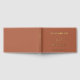 Cet élégant livre d'hôtes mariage en terre cuite présente une véritable feuille d'or, vos noms dans la typographie serif classique, unis par "et" dans un script chic avec des swashes, et votre date mariage. Vous pouvez personnaliser le titre sur la colonne vertébrale.
