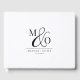 Un élégant monogramme moderne avec des initiales de serif classiques jointes par une élégante esperluette de script, sur livre d'hôtes mariage blanc. Parfait pour une mariage moderne et minimaliste.