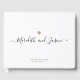Cet élégant livre d'hôtes mariage noir et blanc présente vos noms dans la calligraphie script tendance avec votre date de mariage ci-dessous et un coeur doré rose imprimé ci-dessus. Customisez facilement la colonne vertébrale et remplacez le dos par votre moment photo préféré. Ce souvenir sophistiqué sera chéri pendant des années à venir.