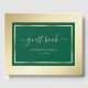 Elégant livre d'hôtes personnalisé vert émeraude et mariage d'or avec script moderne. Personnalisez facilement en ligne. Objets correspondants disponibles pour compléter ce livre d'or mariage vert émeraude moderne. Pour des demandes personnalisées, envoyez-nous un message via Zazzle conversation.