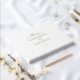 Script élégant moderne Classic Mariage Foil Guest Book dispose d'un script de calligraphie unique associé avec un style élégant. Les couleurs noir et blanc sont parfaites pour tout événement, formel ou décontracté.