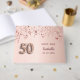 Un livre d'or pour une fête de 50e anniversaire girly et glamour. Un arrière - plan d'or faux rose avec de l'or rose, des étoiles qui coulent rose. Personnalisez et ajoutez un nom et une date. Le nom est écrit en or rose foncé avec un script de style moderne écrit à la main. Le numéro 50 est écrit avec une police de style ballon.