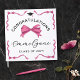 Livre d'or de la graduation féminine avec un grand arc rose au-dessus du nom du diplômé dans un joli script noir. Les coins sont ornés d'autres illustrations d'arcs roses avec de longs rubans pour former un cadre pour la couverture et le dos du livre d'or de la fête de remise des diplômes carré. Un design de girly pour une jeune fille avec du texte personnalisé et sans photo!