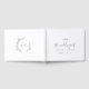 Ce livre d'hôtes minimaliste en monogramme vert olive mariage est parfait pour un mariage de saumons. Le design se compose d'une simple silhouette de feuille de verdure en vert d'olivier, au style bohème minimaliste de montagne. Personnalisez la couverture avant avec les noms du couple et la date du mariage.