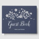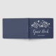 Livre d'or de mariage élégant et chic à fleurs blanches sur fond bleu marine.