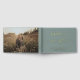 Elégant livre d'hôtes mariage vert sauge avec votre choix d'or réel, argent ou feuille d'or rose, "Happily Ever After" dans une simple typographie et un script chic avec des swashes, vos noms romantiques unis par un coeur et votre date mariage. Personnalisez votre titre sur la colonne vertébrale et ajoutez votre photo fiançailles préférée au dos.