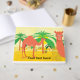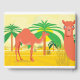 Cette falaise abrite 2 chameaux dans le désert, près de quelques palmiers.