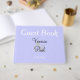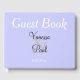 Joli périwinkle. Personnalisez les noms des mariés et des mariés dans un texte violet plus profond. Le livre d'hôtes et la date du mariage sont écrits en blanc. et la date du mariage. L'amour est écrit sur le dos. Notre Mariage est écrit de son côté. Periwinkle est une couleur assez heureuse dans la famille du violet bleu. Design original par TamiraZDesigns.