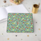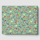 Ce livre d'hôtes présente des illustrations de leurres de pêche inspirées des leurres de pêche vintages dans les tons rouge et jaune sur un arrière - plan turquoise pâle.