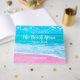 Un beau livre d'hôtes Beach House pour votre maison de location de vacances avec une plage de sable rose sur l'avant et texte entièrement personnalisable.