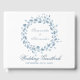 Un élégant livre d'hôtes de mariage avec un doux bleu poussiéreux aquarelle couronne florale autour des noms de la mariée et du marié avec un magnifique Script. Délicats feuilles pour célébrer votre importante journée en harmonie avec la nature. Vous pouvez modifier le texte à partir du menu Personnaliser et le customiser plus loin avec les outils fournis. Si vous avez besoin d'aide et pour d'autres produits correspondants, veuillez me contacter.
