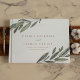 Élégant livre d'or de mariage botanique à l'aquarelle présentant de belles branches d'olive dessinées à la main encadrant vos détails. Personnalisez avec vos noms et date de mariage en typographie couleur nature.