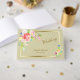 Un joli bouquet fleuri printanier aux couleurs de corail rose, lavande rose, blanc, jaune pâle, or et bleu niché parmi les feuilles verts turquoises en haut à gauche de ce livre d'hôtes mariage. Une image florale de coordination plus petite se trouve en bas à droite. Derrière les deux images se trouve un cadre doré brillant. Le texte est en or foncé dans trois champs du cadre. L'aquarelle fleurie et le texte sont placés sur un arrière - plan d'or clair antique. L'arrière du livre a une petite image florale d'angle inférieur. Assurez-vous de voir la ligne de mariage correspondante, y compris les invitations, dans notre magasin.