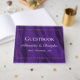 Un élégant livre d'hôtes mariage violet avec un motif de soie violette brillante à l'avant et à l'arrière, avec un double cadre métallique doré imprimé sur les deux côtés. Tous les détails peuvent être personnalisés pour convenir, et les anneaux au dos du livre peuvent être enlevés si désiré aussi.