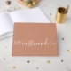 Un monogramme du nom d'un couple moderne et élégant et minimaliste dans le style serif vintage, contrasté avec une police manuscrite de script swash sur fond d'argile. Elégant livre d'invités de mariage pour jeunes mariés. Mélange de styles vintage et moderne.