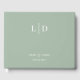 Mariage moderne et simple ou nuptiale Livre d'hôtes en vert. Texte blanc dans un style minimal. Ajoutez simplement vos initiales ou votre monogramme, votre texte et vos noms.
