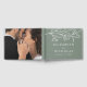 Elégant livre d'hôtes à fleurs florales avec des fleurs blanches esquissées et des feuilles près du sommet du design avec un arrière - plan vert sauge foncé. Personnalisez le livre d'hôtes du mariage botanique avec vos noms et les détails du mariage ci-dessous. Ajoutez du texte personnalisé à la colonne vertébrale comme vos noms, votre date de mariage, etc. L'arrière du livre d'hôtes fleuri est orné de votre photo fiançailles horizontale. Conçu pour coordonner avec notre collection de mariages floraux esquissés.
