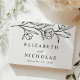 Elégant livre d'hôtes à fleurs florales avec des fleurs noires esquissées et des feuilles près du sommet du design avec un arrière - plan blanc. Personnalisez le livre d'hôtes du mariage botanique avec vos noms et les détails du mariage ci-dessous. Ajoutez du texte personnalisé à la colonne vertébrale comme vos noms, votre date de mariage, etc. L'arrière du livre d'hôtes fleuri est orné de votre photo fiançailles horizontale. Conçu pour coordonner avec notre collection de mariages floraux esquissés.