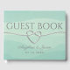 Livre d'hôtes simple et élégant à l'aquarelle menthe vert mariage avec élégant coeur de corde gris argenté et script de calligraphie moderne.