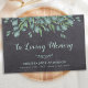 Rustic Chalkboard Eucalyptus Memorial Sympathy Funeral Guest Book. Ce livre d'hôtes funéraire présente une végétation moderne d'eucalyptus, son nom et ses dattes, sur un plan d'ardoise rustique en damier. Personnalisez la colonne vertébrale avec le message et le nom. Cet élégant livre d'hôtes botanique moderne est parfait pour le service commémoratif, la célébration de la vie et des funérailles. DROIT D'AUTEUR © 2020 Judy Burrows, Black Dog Art - Tous droits réservés. Rustic Loy Mémoire Eucalyptus Memorial Funeral Livre d'or