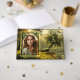 Livre d'hôtes avec une photo personnalisée encadrée par une véritable feuille d'or sur une scène verte avec des arbres. Sur le dos, il y a de l'espace pour une citation personnelle ou un verset biblique si vous le souhaitez. Un élégant livre d'hôtes pour des funérailles, la célébration de la vie ou le service commémoratif.