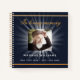 Un livre d'hôtes pour un service commémoratif ou funéraire. Un arrière - plan bleu foncé classique, un cadre en faux or sur le devant. Soleil, rayons étoiles derrière la photo. Personnalisez et ajoutez une photo, un nom et des dates.