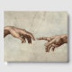 La Création d'Adam par Michelangelo Peinture chef-d'oeuvre - La Création d'Adam est l'un des tableaux les plus célèbres au monde, créé par le maître-artiste Michelangelo à Rome. La Création d'Adam est une fresque classique que Michel-Ange a peinte dans le Vatican de Rome, sur la Chapelle Sixtine, en 1511-1512. La Création d'Adam imprimée sur notre don est une partie de la fresque, montrant toute la création de l'Homme dans le Livre biblique de la Genèse, où Dieu (à droite) donne vie au premier homme, Adam (à gauche). Le tableau montre la presque touche des mains, entre Dieu et Adam. L'image est un tableau emblématique de la Renaissance. Michel-Ange montre Dieu comme un vieil homme aux cheveux blancs et barbus blancs, portant un long vêtement blanc. Dieu et Adam ont tous deux leurs bras tendus l'un à l'autre, comme si Dieu générait une étincelle de vie dans le nouvel homme Adam. La peinture de Michel-Ange montre la ressemblance de l'homme à Dieu, montrant Dieu créé des humains à son image.