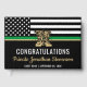 Ce design de graduation comprend un drapeau militaire avec des rayures noires et blanches, ainsi qu'une mince bande verte. Les bottes de l'armée d'or sont placées au-dessus du nom du sergent, du capitaine, du soldat, du lieutenant ou du général diplômé.