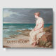 Cette oeuvre d'art classique présente une peinture à l'huile de John William Waterhouse appelée 'Miranda' (1875), inspirée d'un personnage de The Tempest de William Shakespeare. Il y a une jeune femme assise sur des rochers près de la mer, qui regarde vers l'océan.