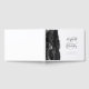 Cet élégant livre d'invités de mariage présente un design d'agate d'aquarelle noire, orné d'une parties scintillant en faux argent. Customisez facilement le texte gris fusain sur un arrière - plan blanc, avec les noms de la mariée et du marié dans la calligraphie de l'écriture manuscrite fantasque sur une large bande grise. Ajoutez le texte de votre choix à l'avant et à la colonne vertébrale.