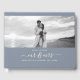 Ce livre d'hôtes simple et moderne de calligraphie personnalisée est parfait pour un beau mariage chic. Le design sophistiqué noir et blanc présente vos noms et date mariage dans la typographie minimaliste ainsi qu'un script manuscrit romantique et fantaisiste disant "Mr et Mrs" sous votre photo préférée en noir et blanc. A l'arrière, il y a de la place pour une autre photo préférée. C'est la version bleu poussiéreux.