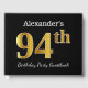 Ce livre d'or porte le numéro ordinal "94th" avec un aspect faux/imitation or. Il porte également un nom personnalisé et un arrière - plan de couleur noire. Il pourrait être utilisé à une fête pour quelqu'un célébrant son quatre-vingt-quatorzième anniversaire. [~Z0000054]