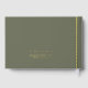 Dans Loving Memory, Funeral / Celebration of Life photo livre d'or, avec un design simple, minimal et élégant, avec une couverture souple et veloutée dans un ton vert olive attrayant, et feuille réelle en bandes, et détails textuels. Possibilité de remplacer "In loving memory" par "Celebrating the Life of" à l'aide de la zone de texte modèle. Choisissez parmi trois options de taille et trois couleurs de feuille : or, argent ou or rose. Personnalisez-le avec vos informations personnelles sur le devant et la colonne vertébrale et ajoutez au dos tout message que vous voulez.