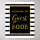 Veuillez signer la pancarte du livre d'or de mariage en motif rayures noires et or et blanc avec lettrage de style manuscrit. Parfait pour les mariages, les baby showers, les fêtes de fiançailles, les anniversaires de mariage, les anniversaires et plus encore.