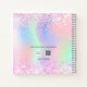 Un livre d'or pour une fête d'anniversaire du 18e (ou de tout âge). Un arrière - plan holographique tendance en rose, violet, vert menthe. Décoré de confettis roses. Personnalisez et ajoutez un nom, le nom est écrit avec un script de style à la main moderne et girly lettres de couleur violet.