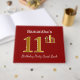 Ce livre d'or est orné du numéro ordinal "11ème" avec un aspect faux or. Il porte également un nom customisé et un arrière - plan de couleur rouge. Il pourrait être utilisé à une fête pour quelqu'un célébrant son onzième anniversaire. [~Z0000055]