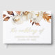Livre d'or rustique mariage avec fleurs d'aquarelle et feuillage dans les tons ivoire, crème, rouille, orange et marron. "Le mariage de" est affiché dans un élégant script de calligraphie de feuille d'or. Personnalisez l'avant du livre d'hôtes mariage de automne avec vos noms et votre date de mariage. Ajoutez votre nom et votre date de mariage à la colonne vertébrale du livre d'or. L'arrière du livre d'hôtes mariage de automne affiche votre photo horizontale. Le livre d'or photo est parfait pour les mariages de automne.