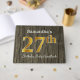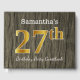 Ce livre d'or est orné du numéro ordinal "27th" avec un aspect faux/imitation or. Il est également doté d'un nom customisé et d'un arrière - plan rustique en faux bois. Il pourrait être utilisé à une fête pour quelqu'un célébrant son vingt-septième anniversaire. [~Z0000053]