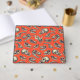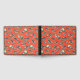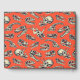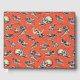 Ce livre d'hôtes présente des crânes de dinosaures illustrés à la main en bleu marine et crème sur un arrière - plan rouge-orange vif.