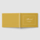 Élégant service commémoratif ou livre d'invité de Célébration de la Vie avec arrière - plan d'or, texte blanc et en-tête de script. Customisez tout le texte ; si vous n'avez pas besoin d'un champ, supprimez-le. L'or et le blanc correspondent à la simple invitation élégante correspondante et simple carte programme élégante.
