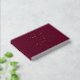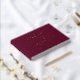 Ajoutez une touche personnalisée à votre cérémonie de mariage avec ce livre d'or Simple Burgundy and Gold Foil Script. Le design présente vos noms affichés dans un élégant script de calligraphie de feuille d'or avec votre date et votre emplacement mariage indiqués ci-dessous sur un arrière - plan bordeaux. Ajoutez votre texte personnalisé à la colonne vertébrale du livre d'or. L'arrière du livre d'or contient votre photo fiançailles horizontale.